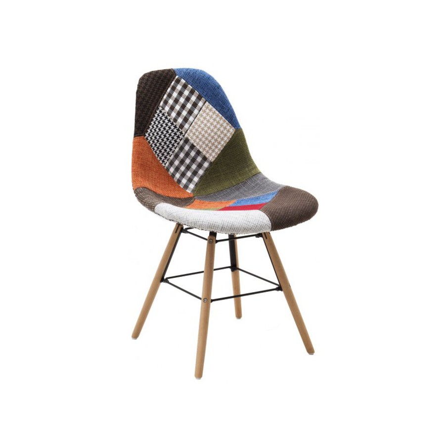 Sedia con struttura in legno verniciata naturale, scocca imbottita e rivestita in tessuto