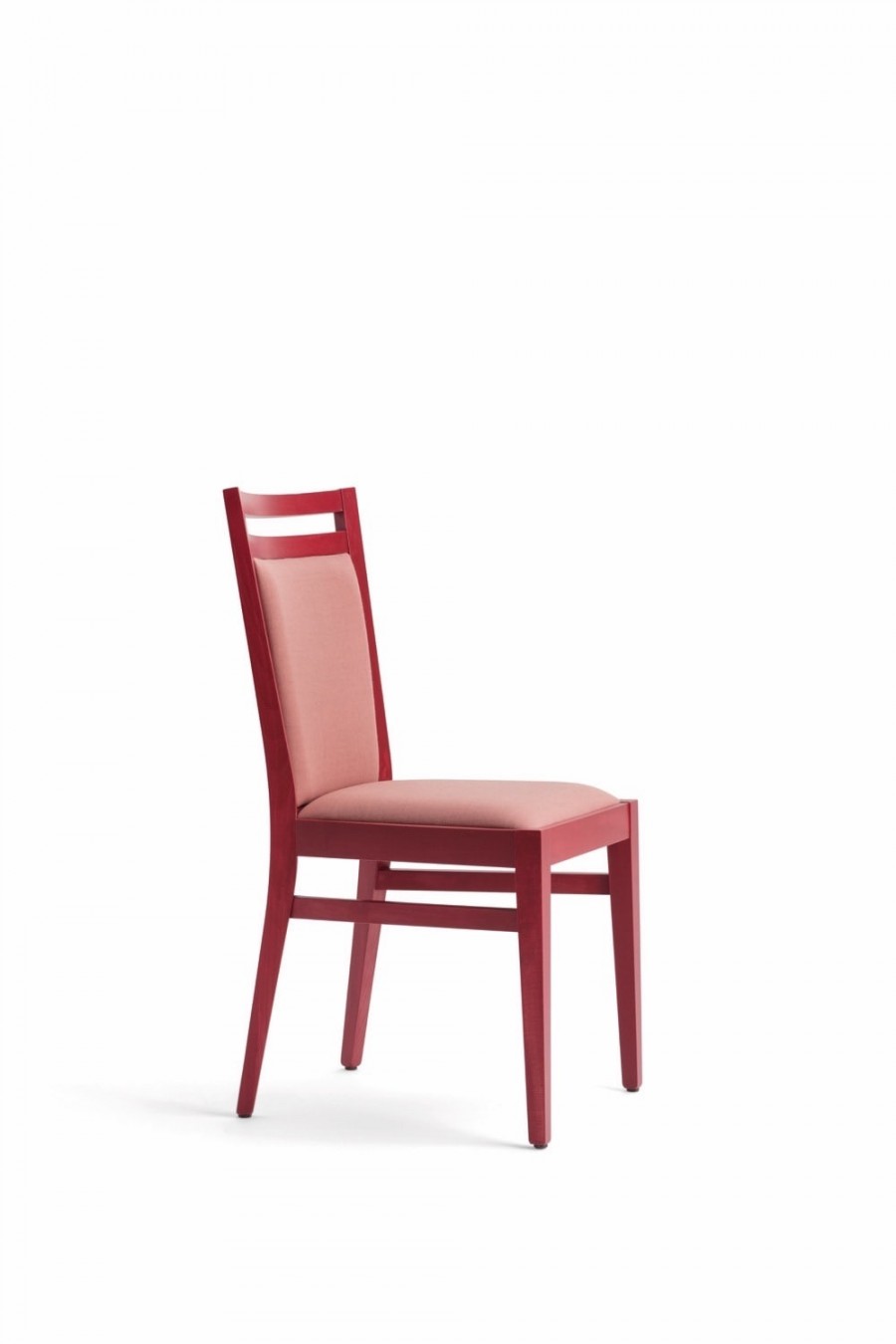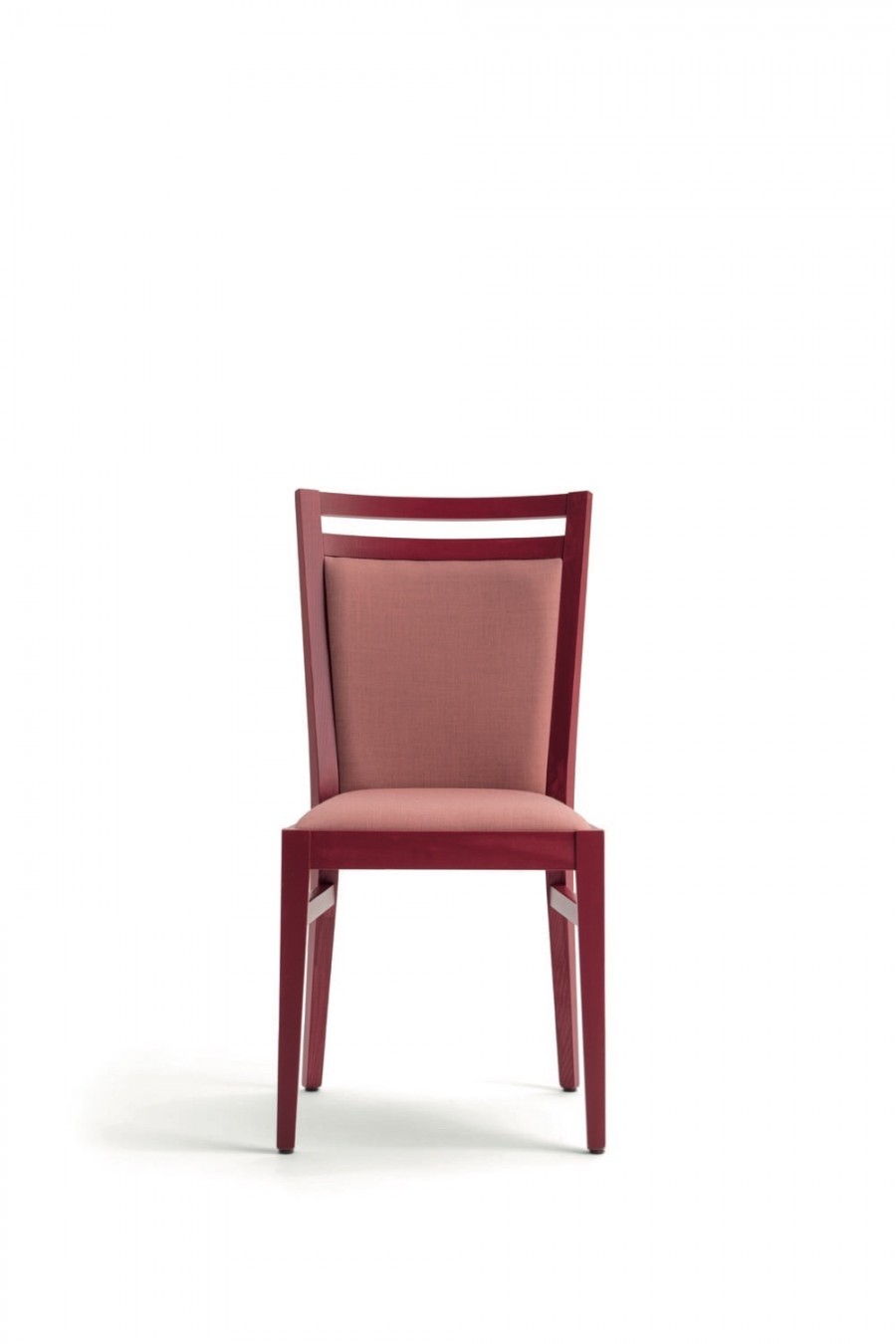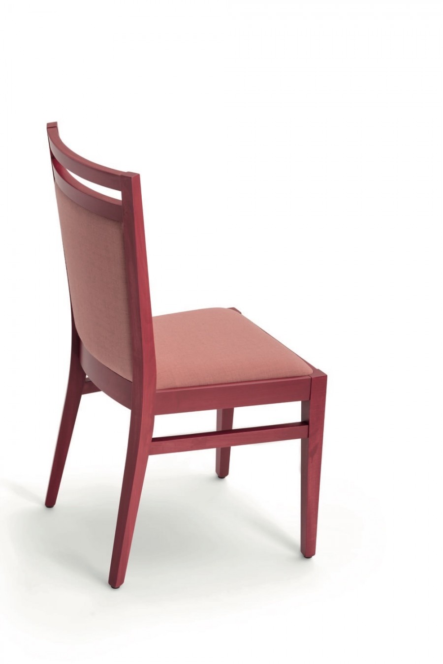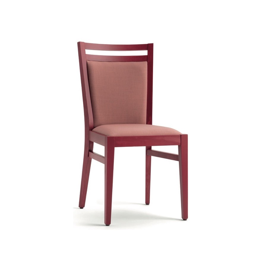 Sedia in legno di faggio con seduta e schienale rivestito.