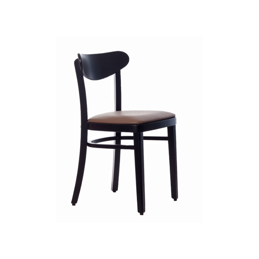 Sedia moderna con struttura in legno di faggio, seduta in legno imbottita e rivestita.
