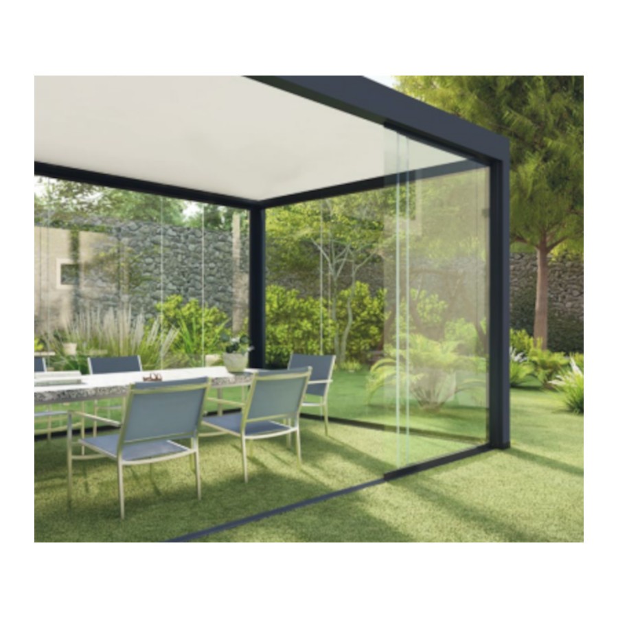 La struttura è gia predisposta per chiusure perimetrali come tende a calata (argano o motore) oppure con vetrate scorrevoli.