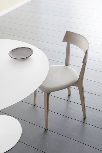 Sedia in legno di faggio disponibile nella versione con sedile multistrati oppure rivestito.