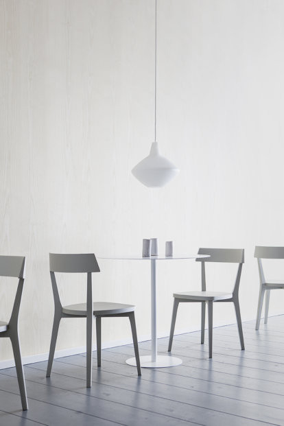 Una sedia moderna, impilabile, ideale per il settore contract ma che grazie alle innumerevoli possibilita' di finiture per struttura e rivestimenti, puo' essere utilizzata anche per l'arredo casa .