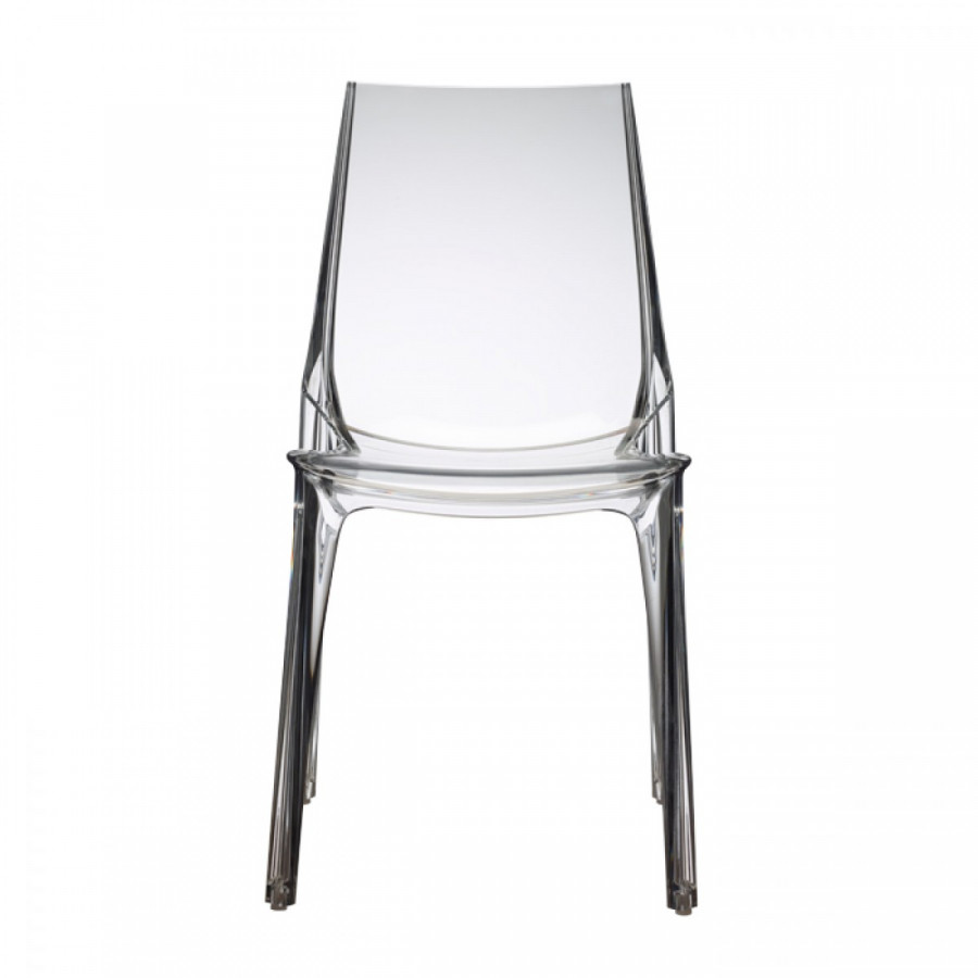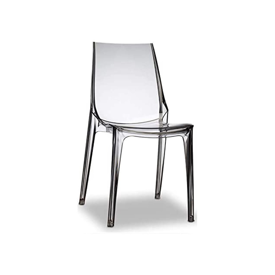In policarbonato, nelle due versioni con e senza braccioli, Vanity e' disponibile nei colori : trasparente, trasparente fumè, bianco lucido e tortora lucido.
