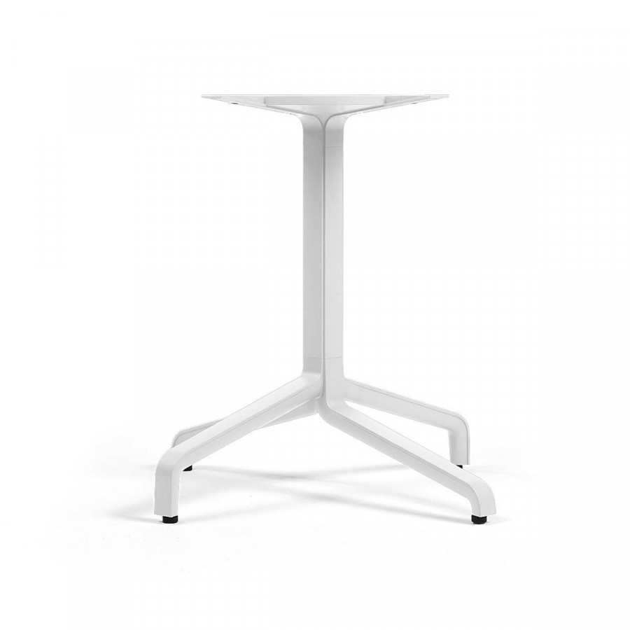 Base per tavoli contract con gamba centrale a 4 piedi in alluminio verniciato ispirata ad un albero rovesciato. Innovativa e particolarmente funzionale per l’utilizzo professionale è adatta a piani Ø 80, Ø 90, 80x80 e 90x90 cm.