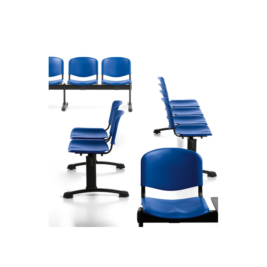 Composizioni da 2 a 5 posti che si completano con tavolinetti integrati in polipropilene nero.
