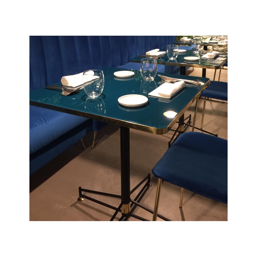 Piano in vetro temperato, verniciato nelle colorazioni ral, con sotto piano in multistrato e bordo in ottone vero, satinato o lucido.