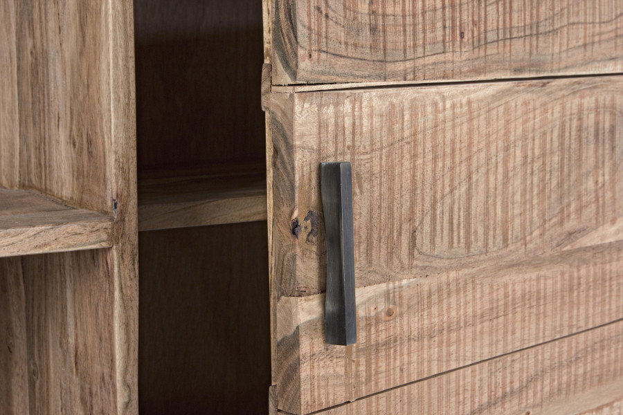 Mobile con struttura in legno d'acacia, schienale in compensato. piedini in acciaio verniciato a polvere epossidica. finitura acrilica protettiva.