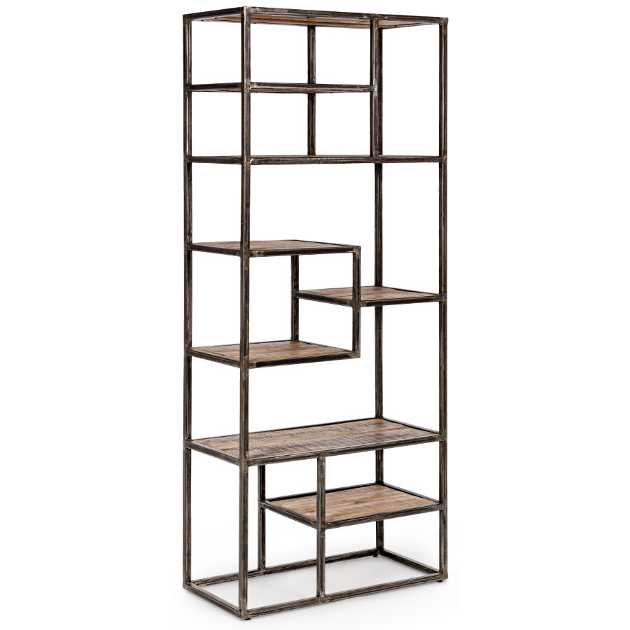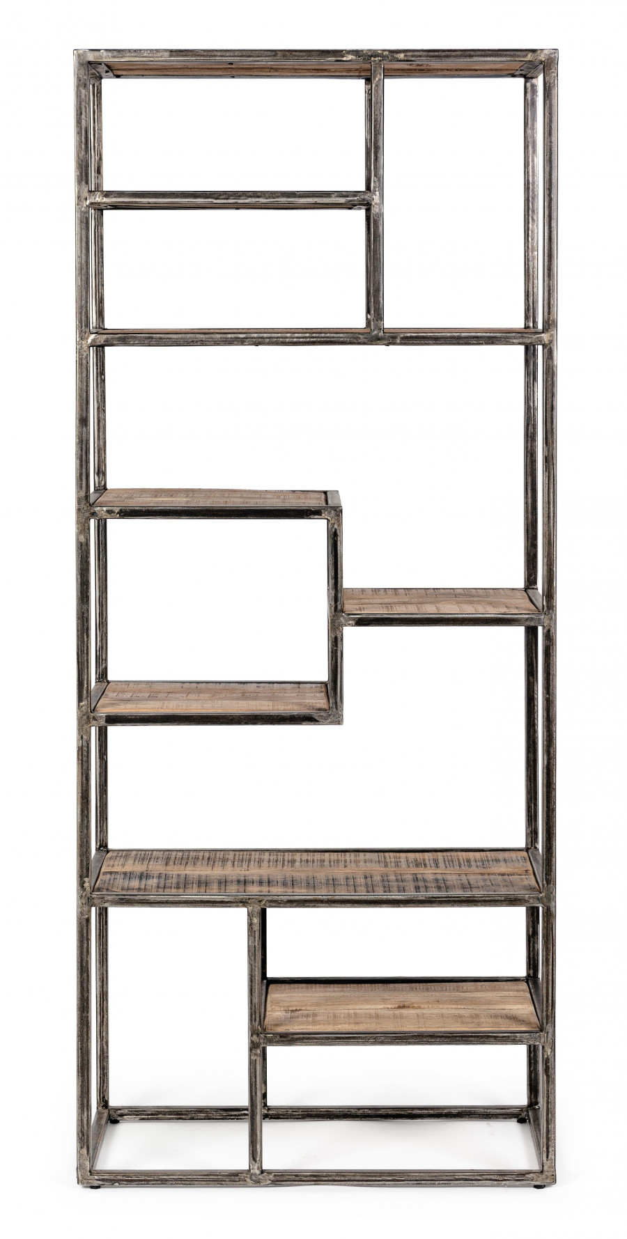 Libreria con struttura in acciaio verniciato a polvere epossidica, ripiani in legno di acacia, finitura acrilica protettiva.