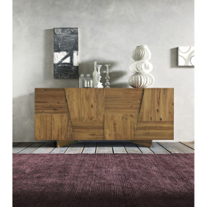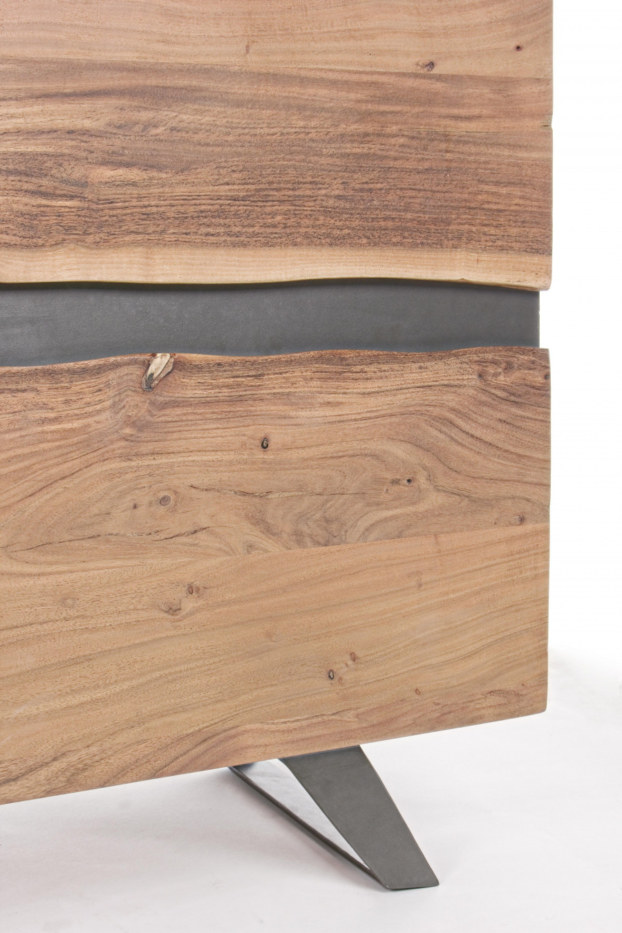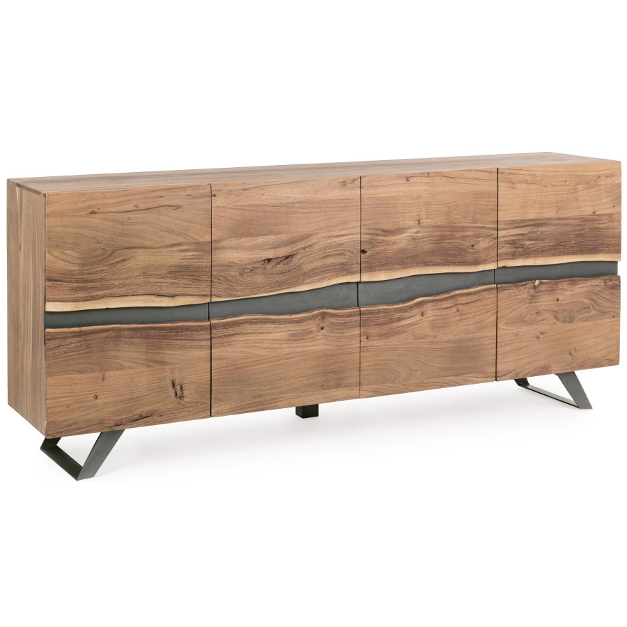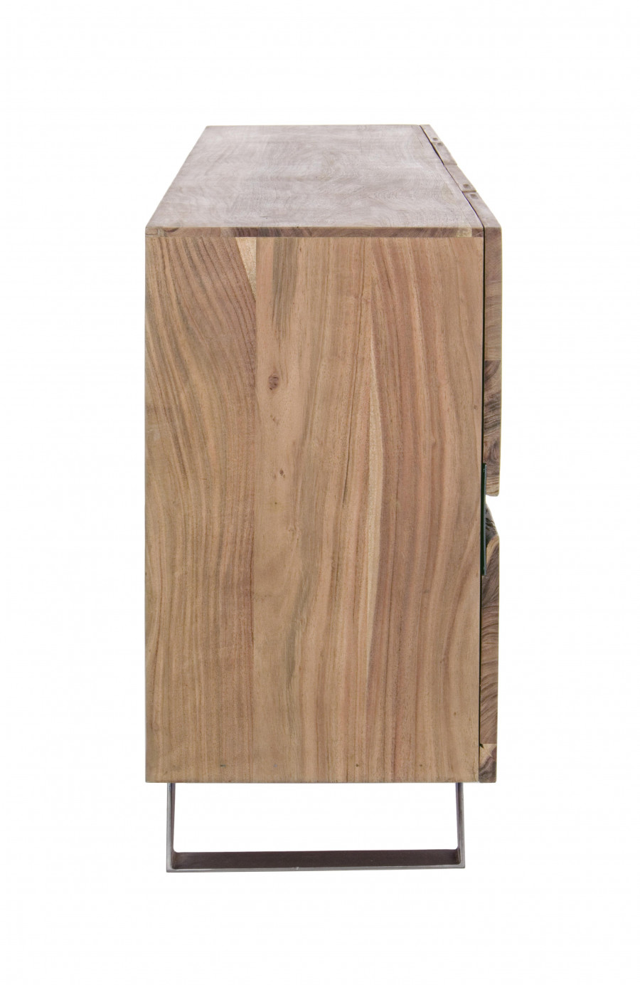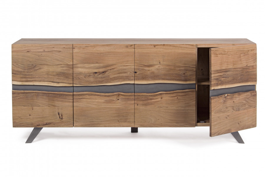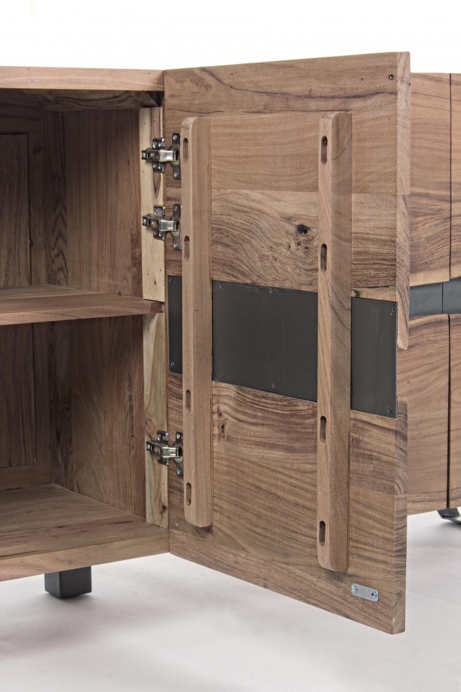 Credenza con struttura in legno di acacia, gambe in acciaio verniciato a polvere epossidica. porte con inserti in metallo. finitura a base di vernice poliuretanica. vano porta comprensivo di mensola