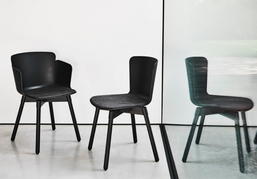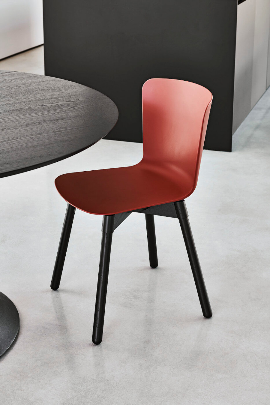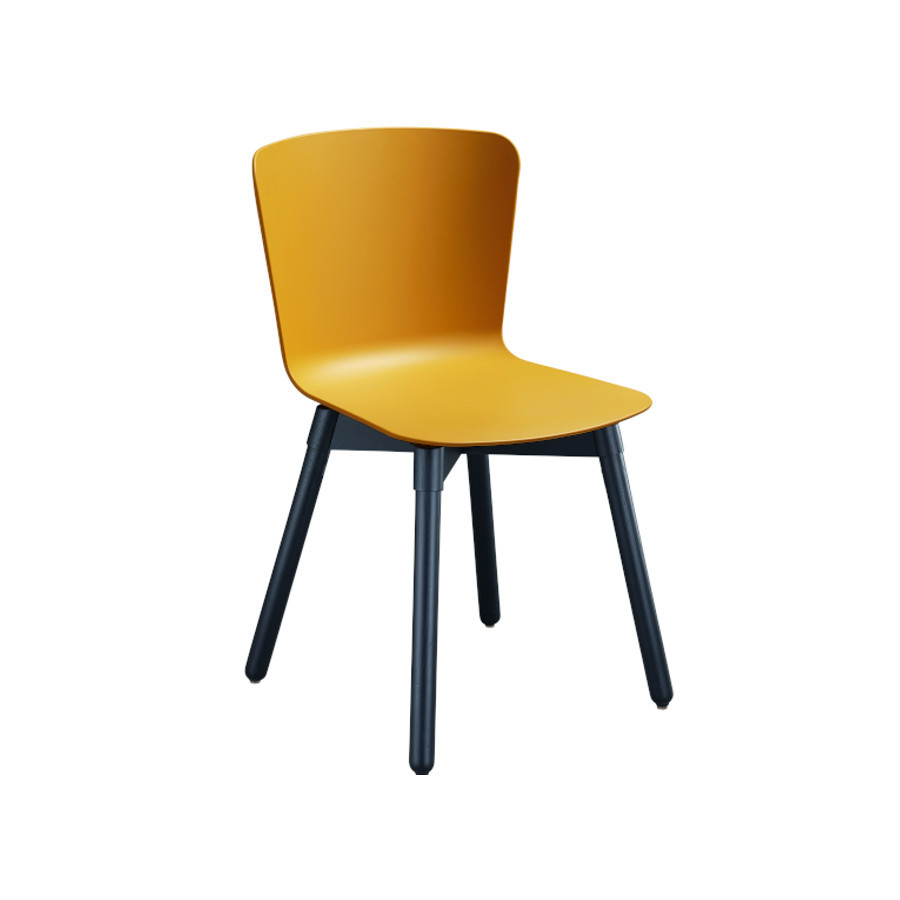 Sedia con struttura in legno e scocca in polipropilene.