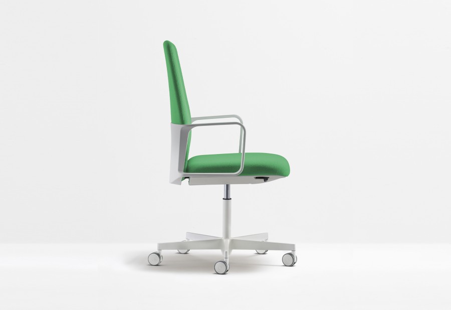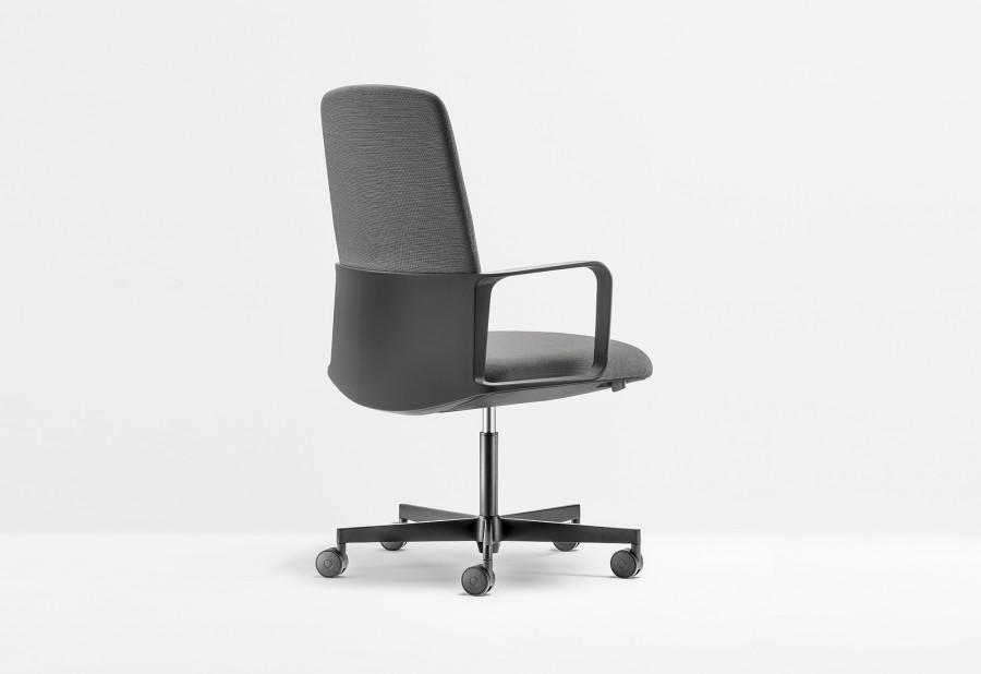 La poltrona direzionale Temps è caratterizzata da una base in pressofusione di alluminio dal design essenziale ed elegante. Attraverso un moderno meccanismo sincronizzato autopesante, capace di regolare autonomamente l’intensità dell’oscillazione in funzione del peso corporeo dell’utente, questa seduta garantisce un’ottima ergonomia e comfort. Un guscio in polipropilene stampato a iniezione cinge il sedile racchiudendone il meccanismo, e avvolge lo schienale in prossimità della zona lombare stabilendo una continuità tra imbottito e materiale plastico.