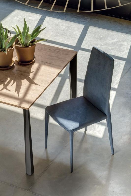 Sedia con struttura in acciaio laccato, seduta e schienale imbottiti e rivestiti in pelle ecologica, Econabuk o tessuto Penny .