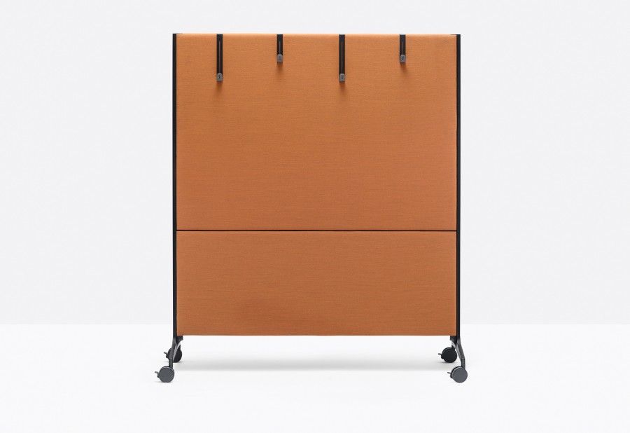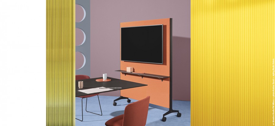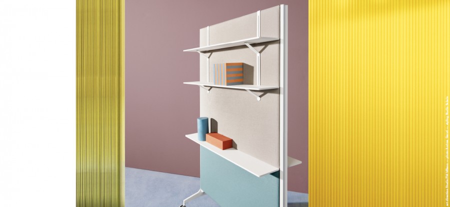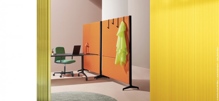 Ypsilon Connect è un elegante e funzionale pannello divisorio fonoassorbente autoportante.