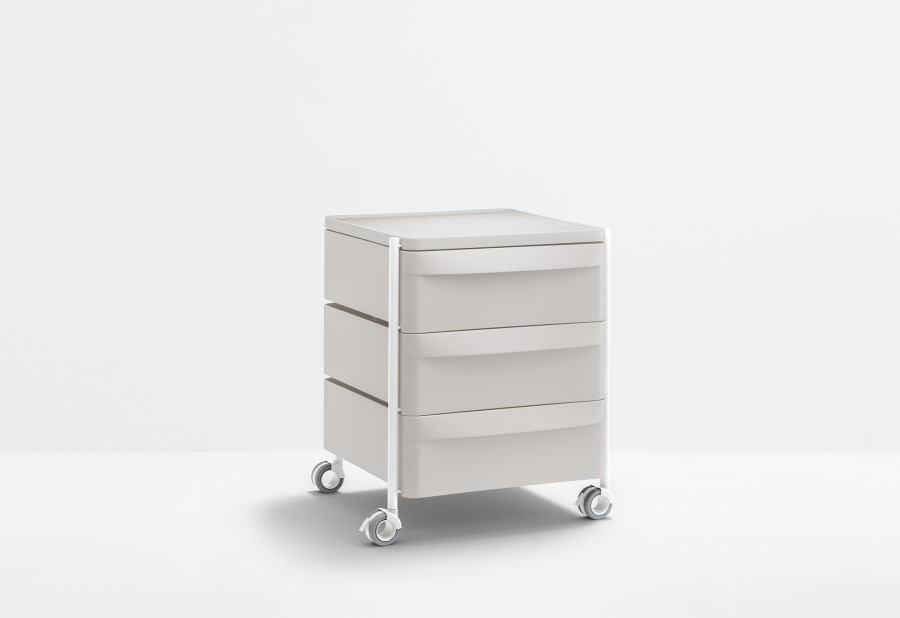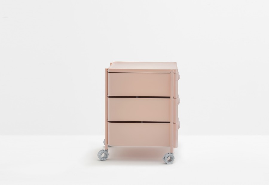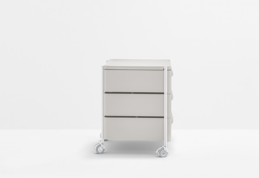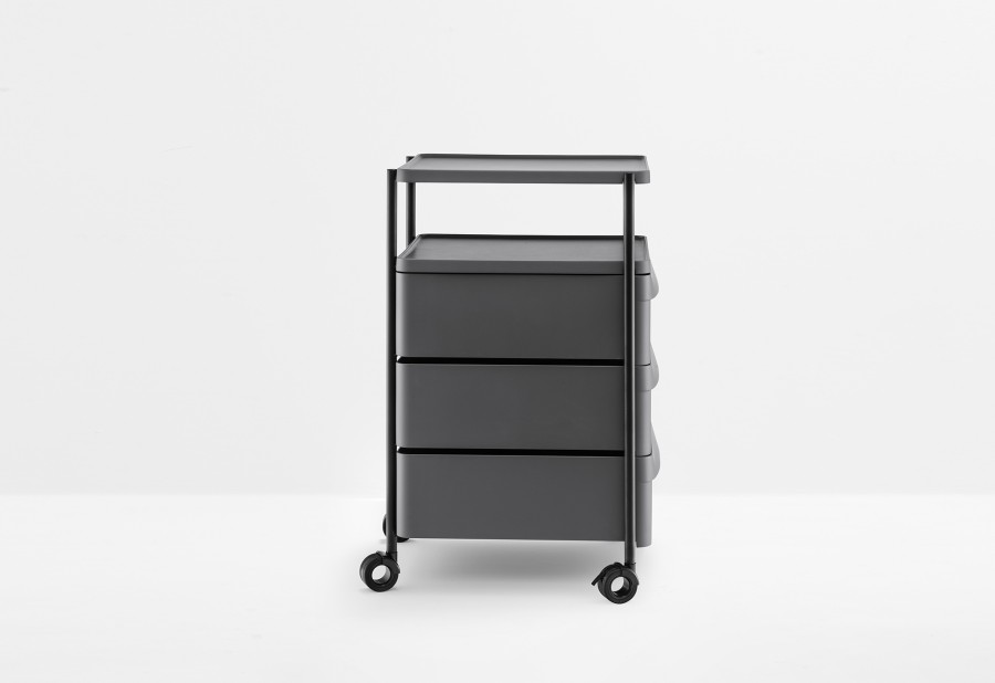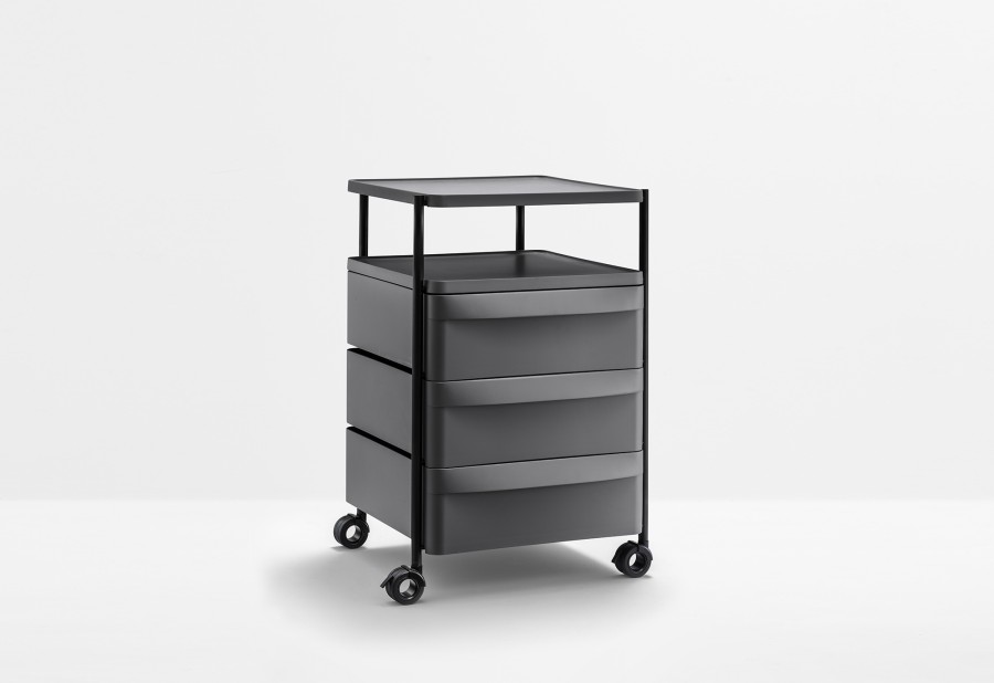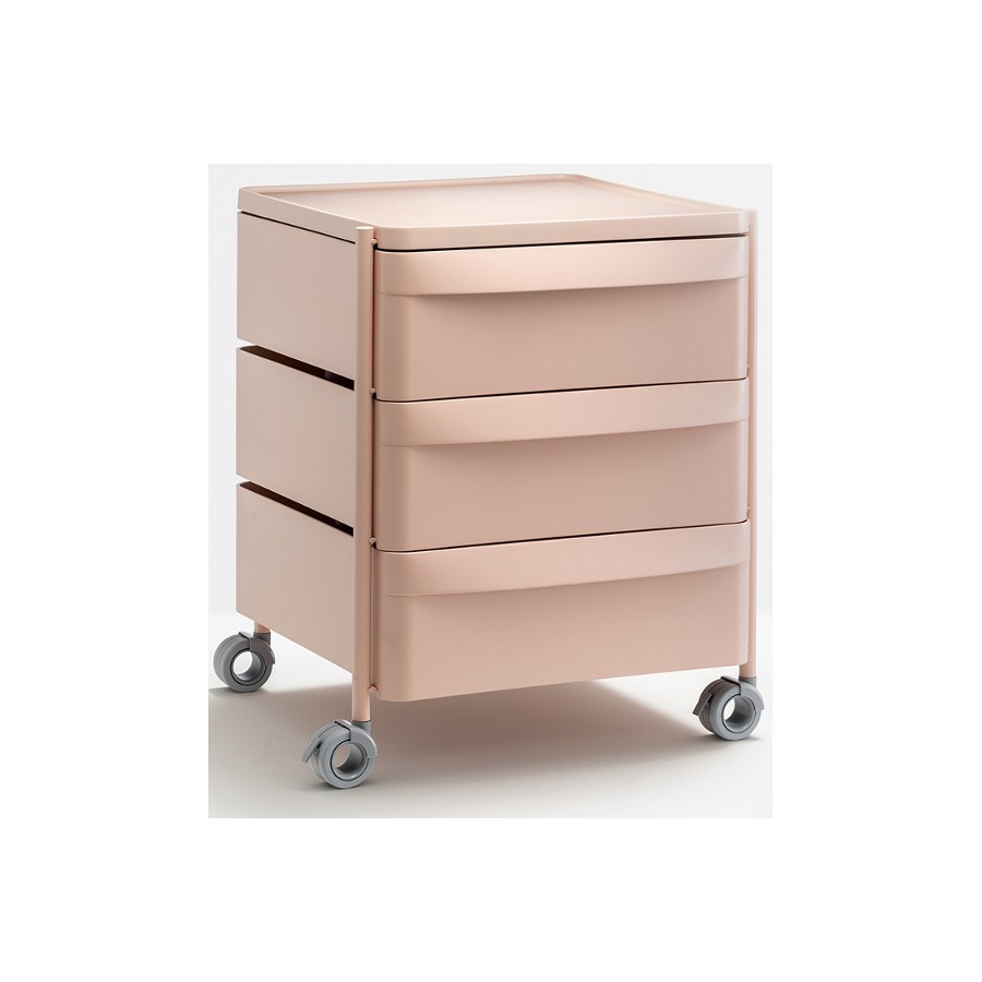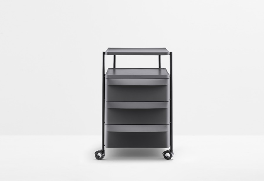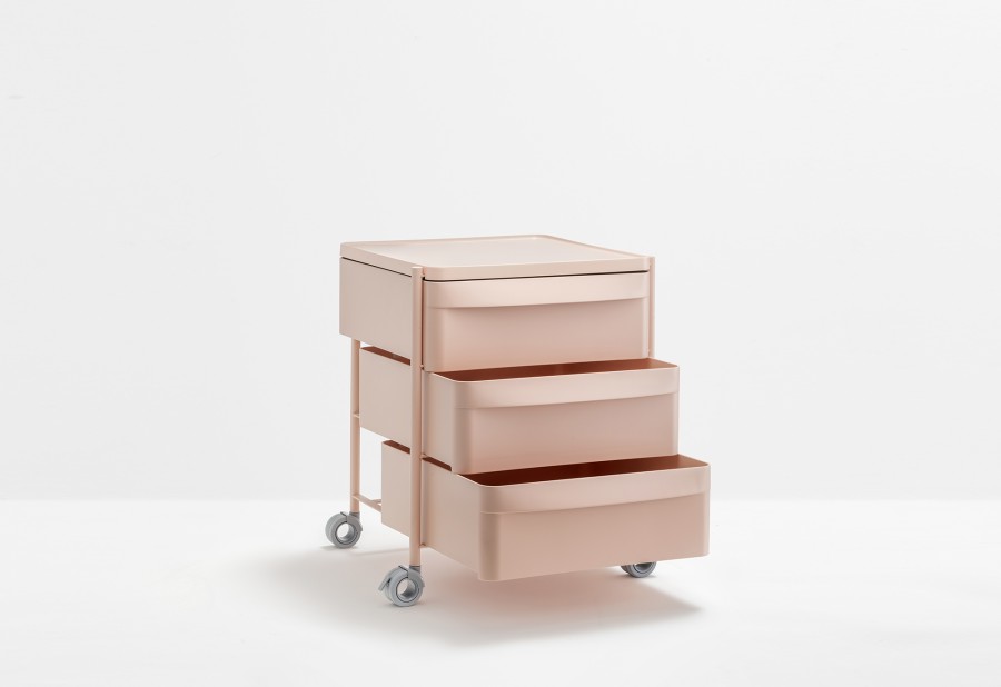 Boxie è un sistema contenitore, dai tratti essenziali e minimali, che si contraddistingue per la sua leggerezza garantita da una struttura in acciaio verniciato all’interno della quale vengono collocati cassetti alternati a piani, entrambi realizzati in polipropilene stampato a iniezione. Sistema composto da tre cassetti, provvisti di una maniglia integrata, e dotato di ruote piroettabili e bloccanti.