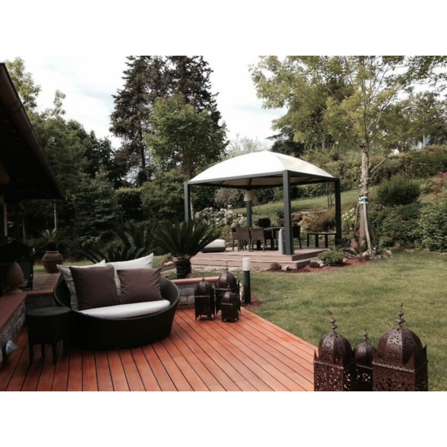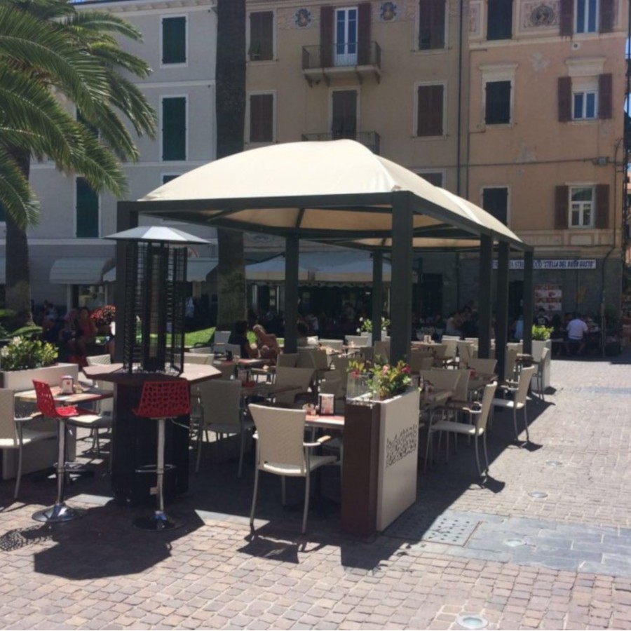 Gazebo con struttura in acciaio zincata e verniciata a polveri.