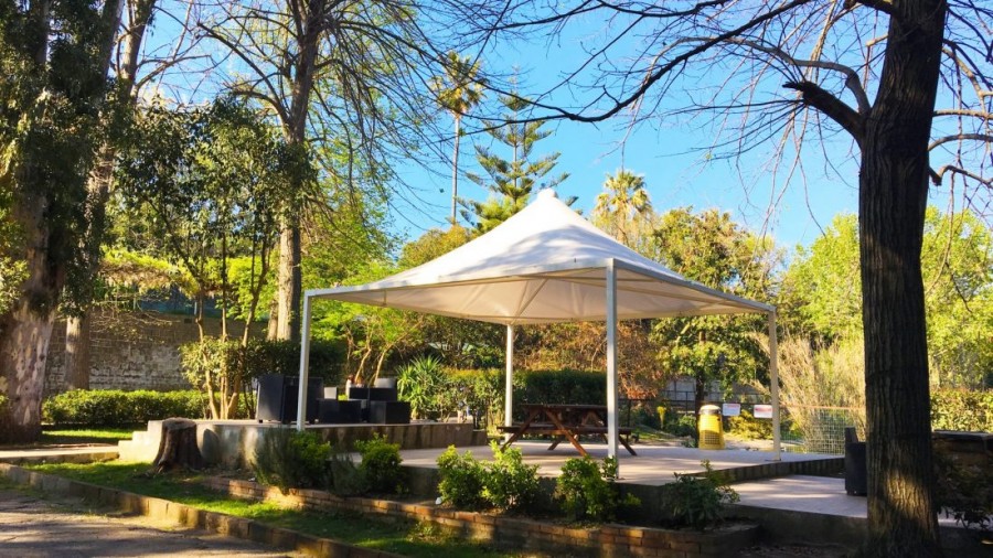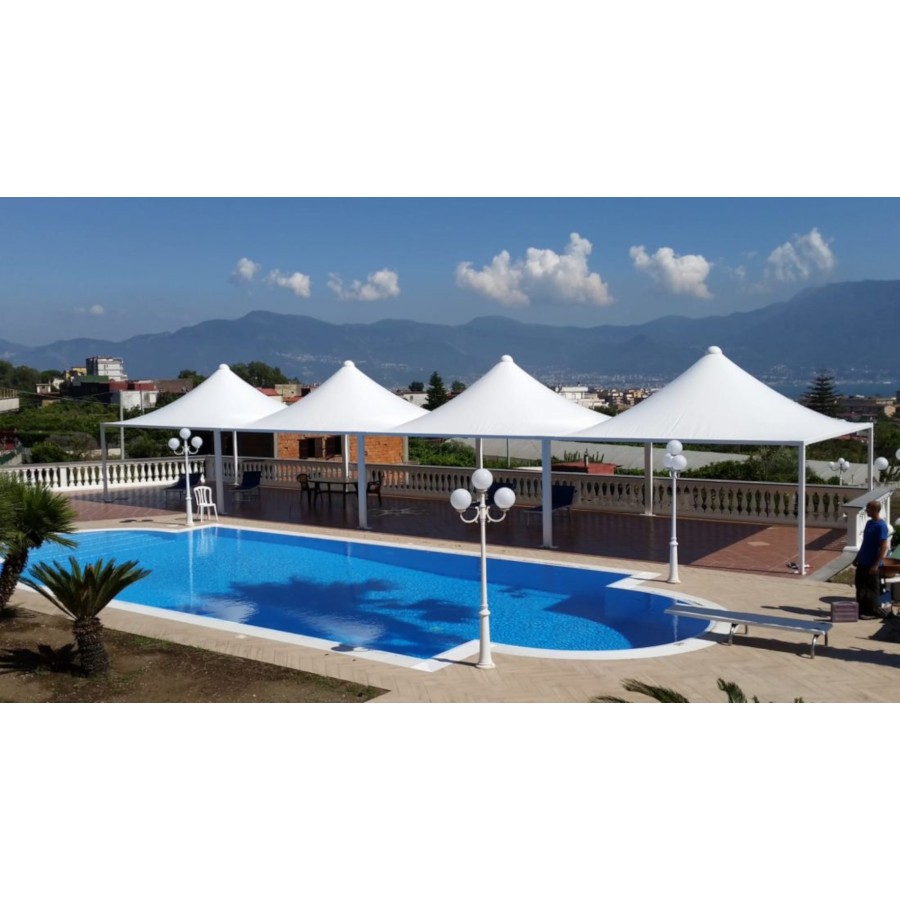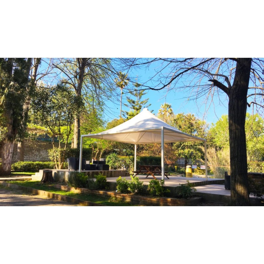 Gazebo con struttura in acciaio zincata e verniciata a polveri.