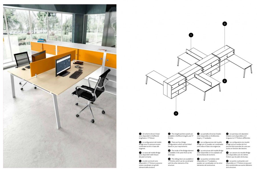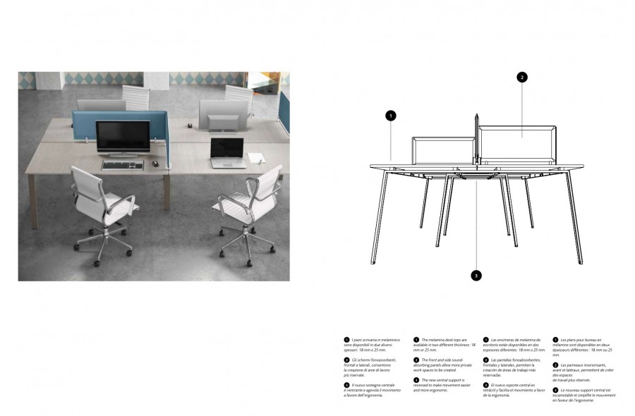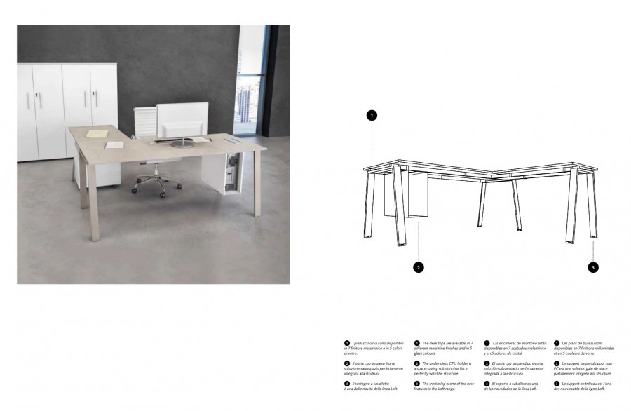 LOFT è la linea studiata per fare incontrare le esigenze di spazio del contemporaneo con un sapiente bilanciamento di volumi della stanza: ottimizzando infatti gli ingombri delle postazioni con strutture sottili per spessore e profondità, è in grado di restituire grande ariosa agli spazi.