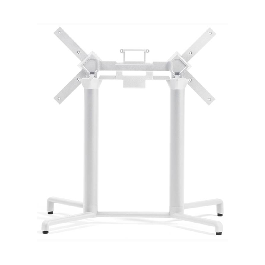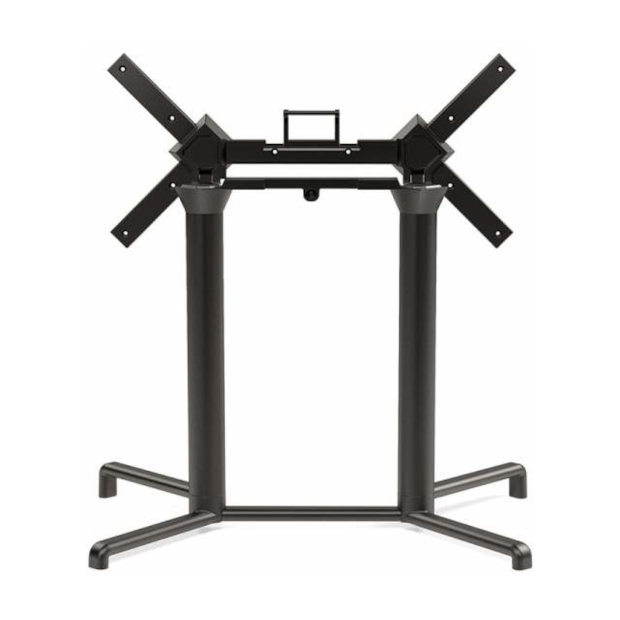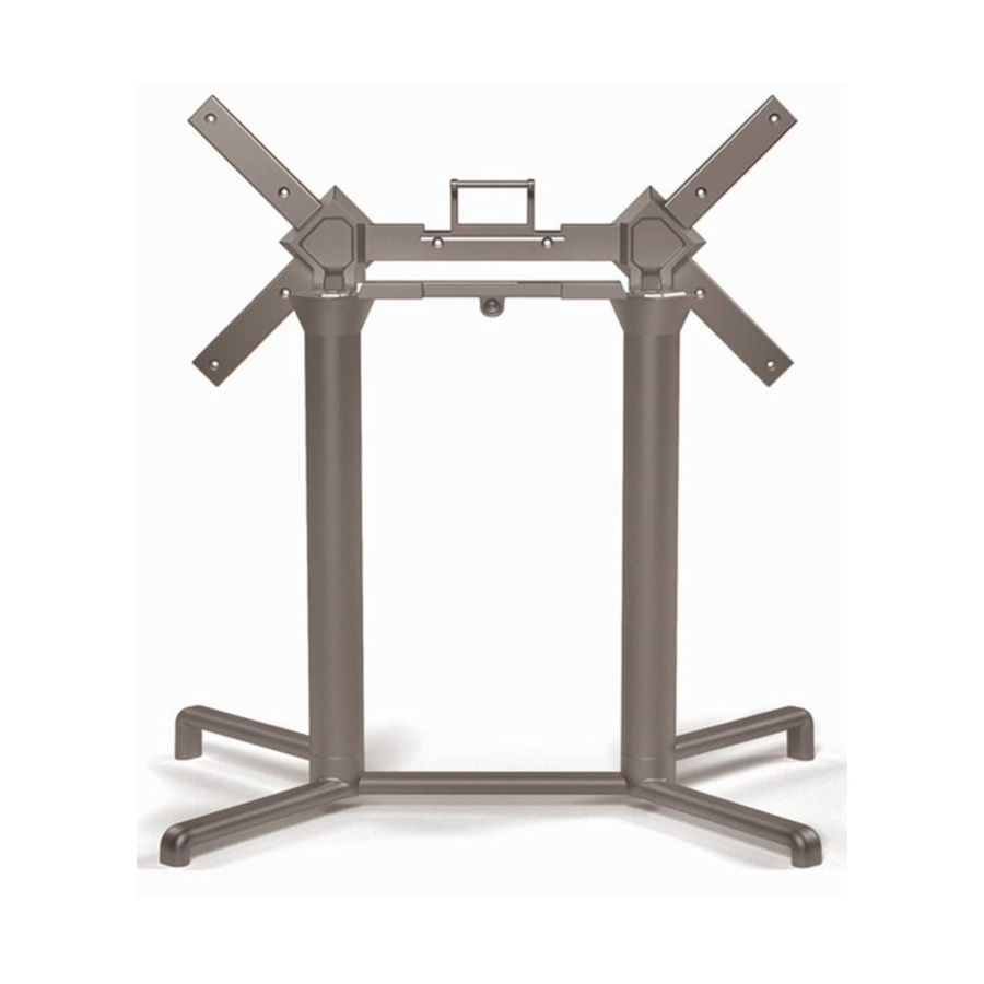 La base è dotata di crociera abbattibile che permette di impilare orizzontalmente i tavoli riducendo in modo significativo lo spazio di stoccaggio in magazzino o all'interno del locale.